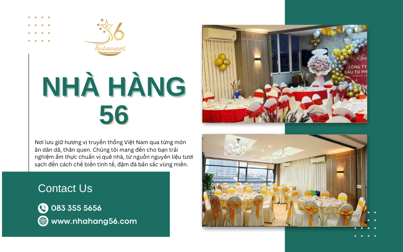 Nếu bạn đang tìm kiếm một không gian để thưởng thức những món ăn Việt Nam truyền thống được nâng tầm, một nơi mà mỗi bữa ăn đều là một tác phẩm nghệ thuật, thì Nhà hàng 56 chính là sự lựa chọn không thể hoàn hảo hơn.